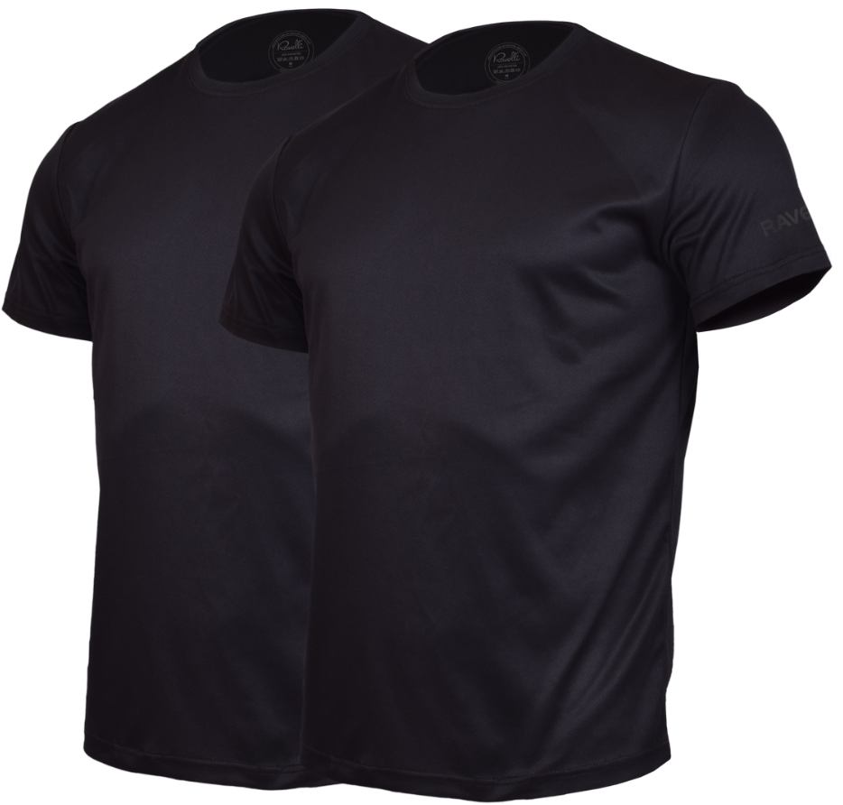 2-pack helsvarta t-shirts. Härlig passform och superskön kvalitet för alla sporter. Snabbtorkande. 100% polyester.