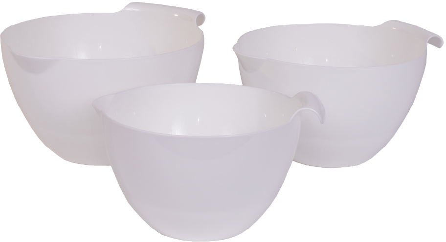 Set med 3 vita skålar med volymerna 1.5, 2.0 och 2.5 liter.