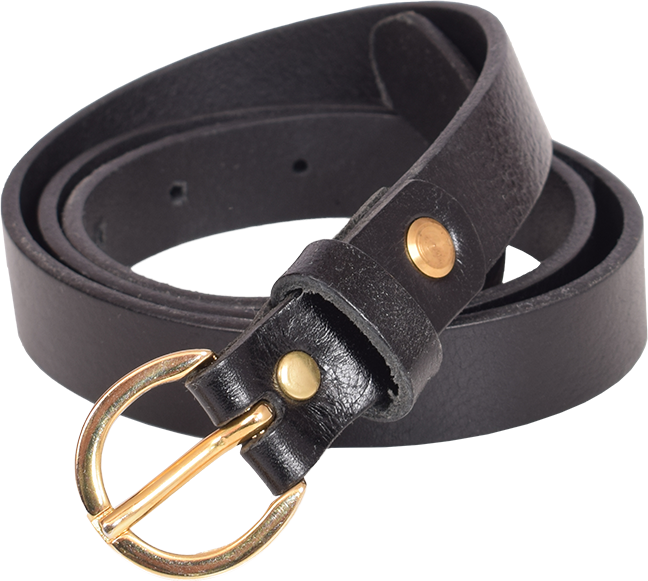 Smalt läderbälte Svart, guldspänne