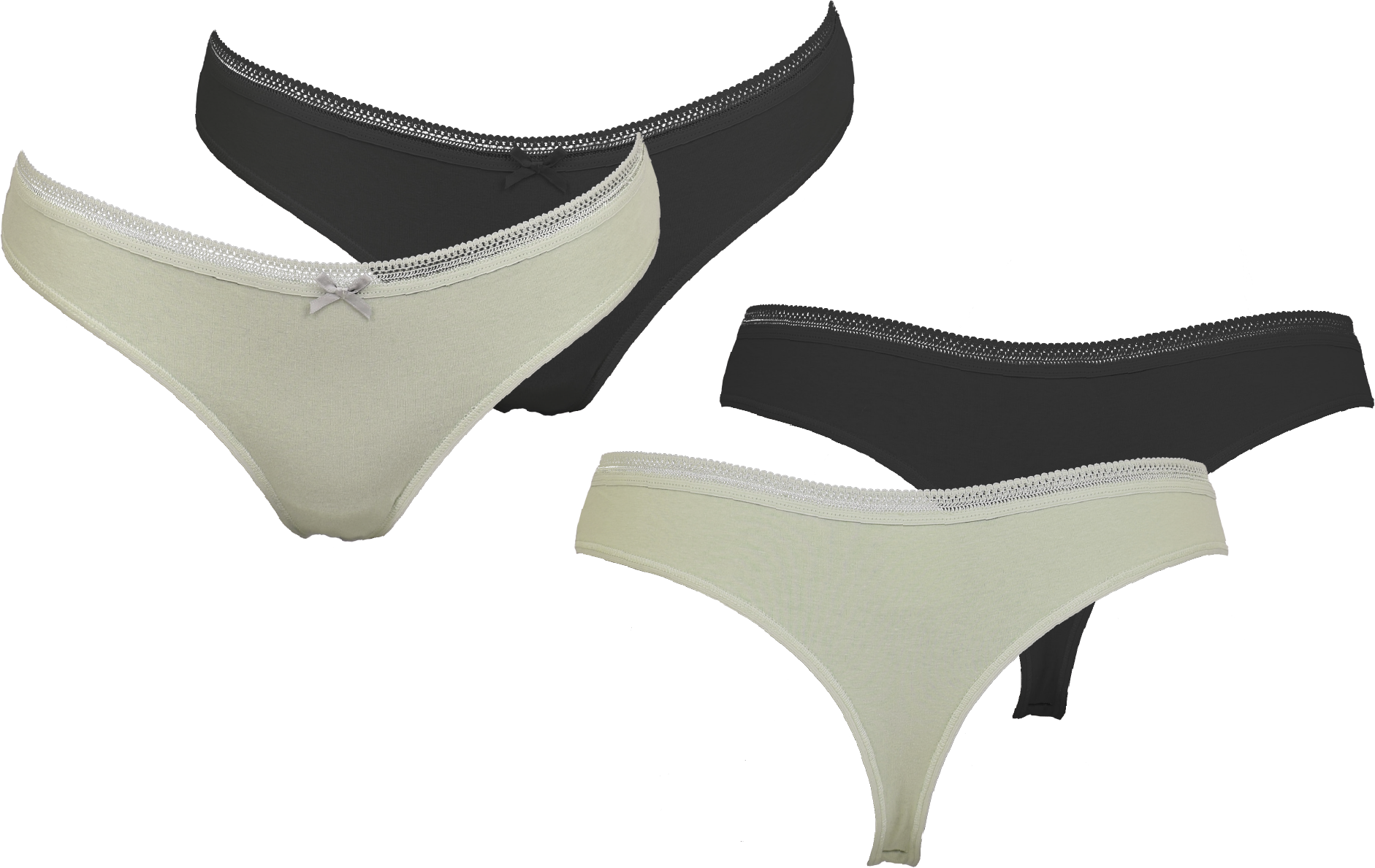 Womens String 5-pack 3st svarta 2 gröngrå